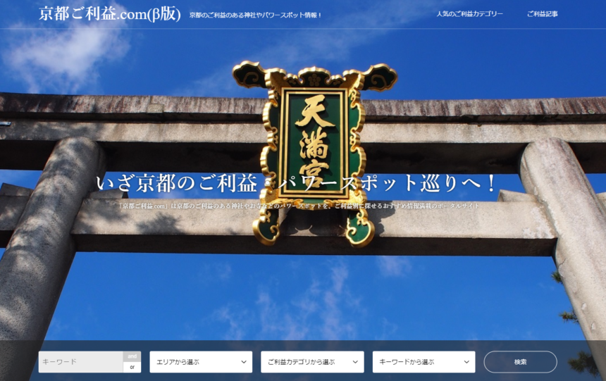 2019年7月1日、京都のご利益のある神社やパワースポットを紹介する「京都ご利益.com」をβ版として公開しました。