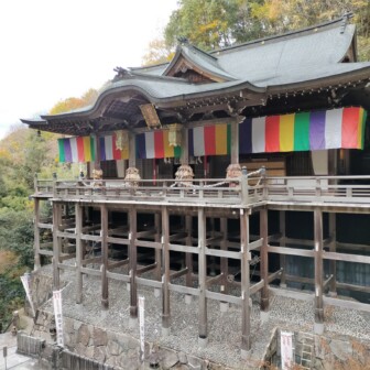 「狸谷山不動院」は、交通安全やガン封じのご利益で有名な寺院です。250段ある参道の石段を登り切ると、清水寺の舞台と同じ造りの本堂が現れます。奥が洞窟と…